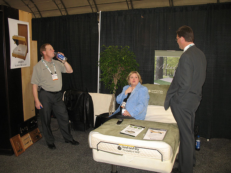 Today, I get to babysit the trade show for one last day and visit with some of the few remaining customers we may have milling about. Then tonight, I get to pack up the show, heaving several big heavy beds into boxes and onto a palette, ready to ship back to Nebraska. I’m hoping to have enough free time tonight to visit a show before heading back home tomorrow.